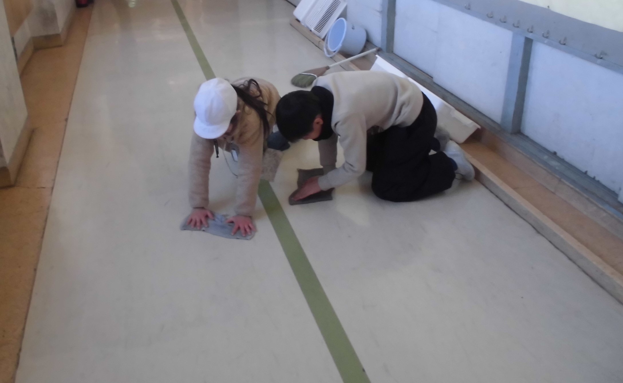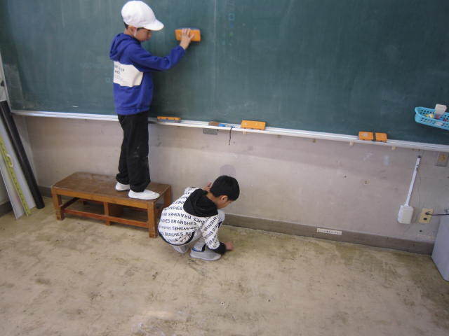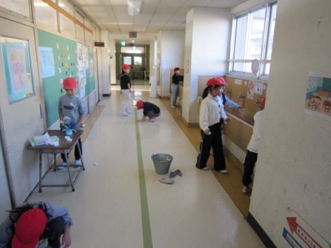 1年生や3年生は教室や廊下の「大掃除」をしていました。メラニンスポンジやクレンザーをつかって、床の普段取れない汚れを取っていました。また、自分以外の机の脚についた埃自ら進んで綺麗にすることもできました。大変素晴らしい..植水小の誇りです。1年生もここが汚いから綺麗にしよう☆と声をかけあって取り組んでいる姿が印象的でした。