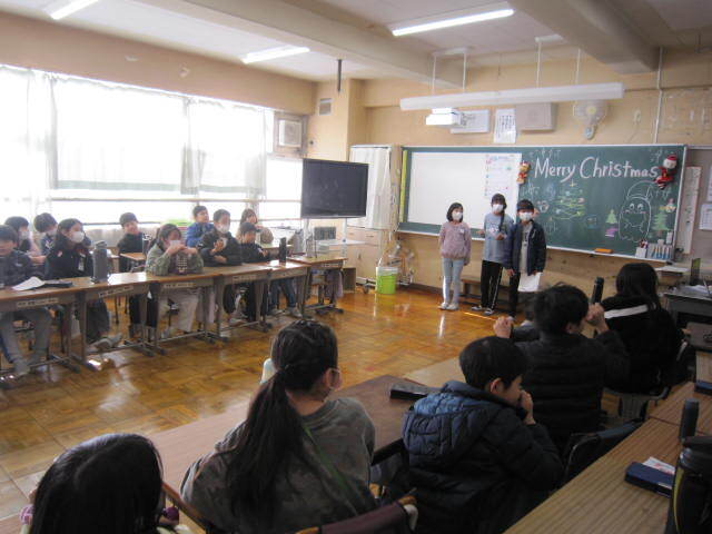 4年生はクリスマスお楽しみ会?でした。クイズを出してみんなで盛り上がっていました。5年生は校庭でジャンケンゲームをしていました。どこも自分たちで進めていることができていて素晴らしかったです!