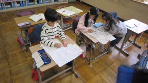 休み時間には、3年生の子どもが学習の一環として、校長室にインタヴューに来ました。毎日、学校で何をしているのかを知りたかったそうです。インタヴューの内容をまとめて、発表するときには、是非聞かせてください。