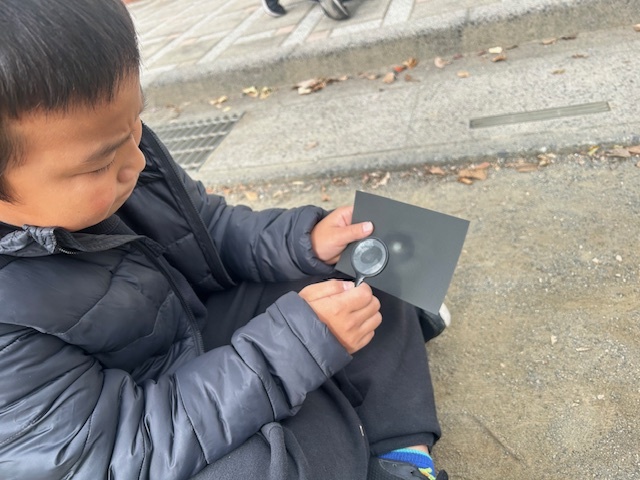 6年生と1年生は図工を楽しんでいました。6年生は、理科室を真っ暗にして、いろいろなものにいろいろな光を当てていました。朝から幻想的..感動しました。1年生は、袋にいろいろなセロファンを入れてユニークな作品を作りました。これも日光に当てると幻想的に..またまた感動です。