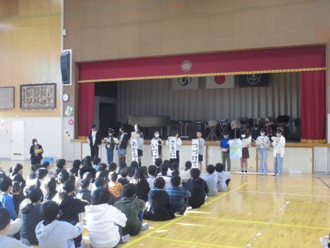 13日(土)に大宮西小学校で青少年育成会主催による「社会を明るくする会 植水地区集会」が開催されます。昼休みは、そこで発表する植水っ子の発表練習を視聴覚室で行いました。たくさんの子どもたちが聞きに来てくれて、緊張している様子でした。これで、本番は落ち着いて堂々と発表できますね!! がんばってください!!