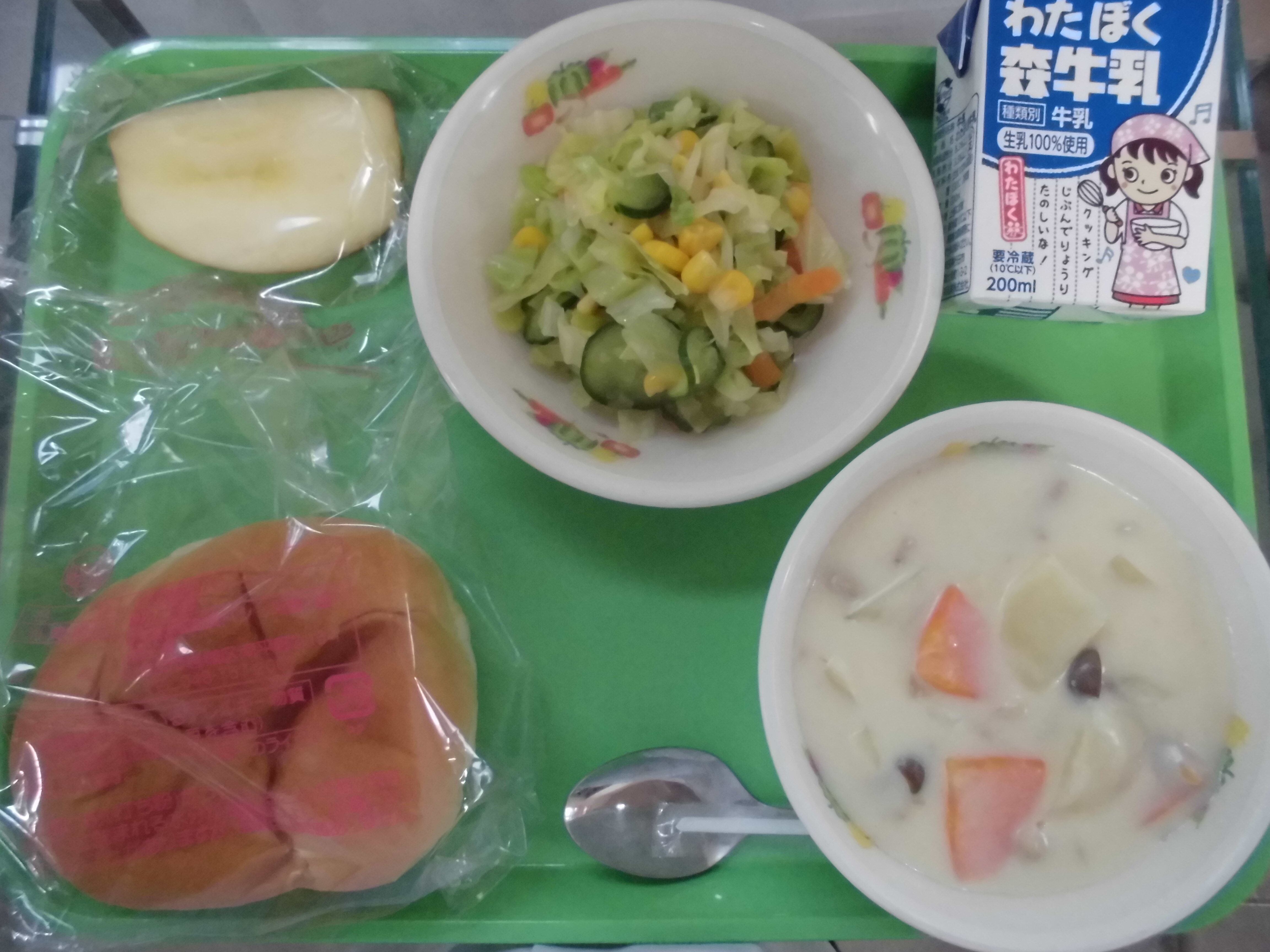 ★今日のデザートは、旬のりんごです。りんごは、栄養価が高く、食べやすいため、世界中で好まれています。「一日一個のりんごは医者を遠ざける」とまで言われているとか。皮も一緒に食べられるの?と聞きながら、みんなよく食べていました。