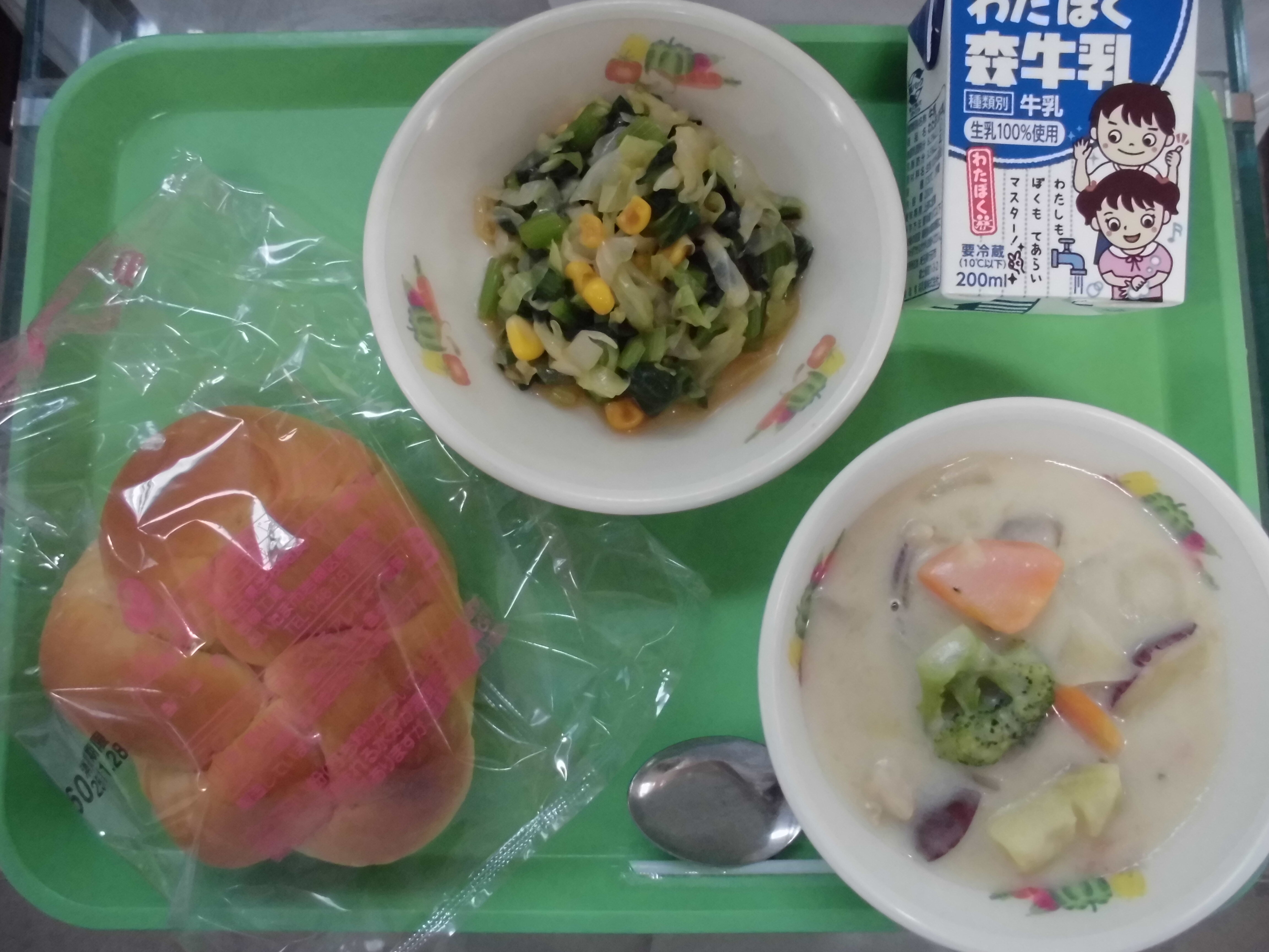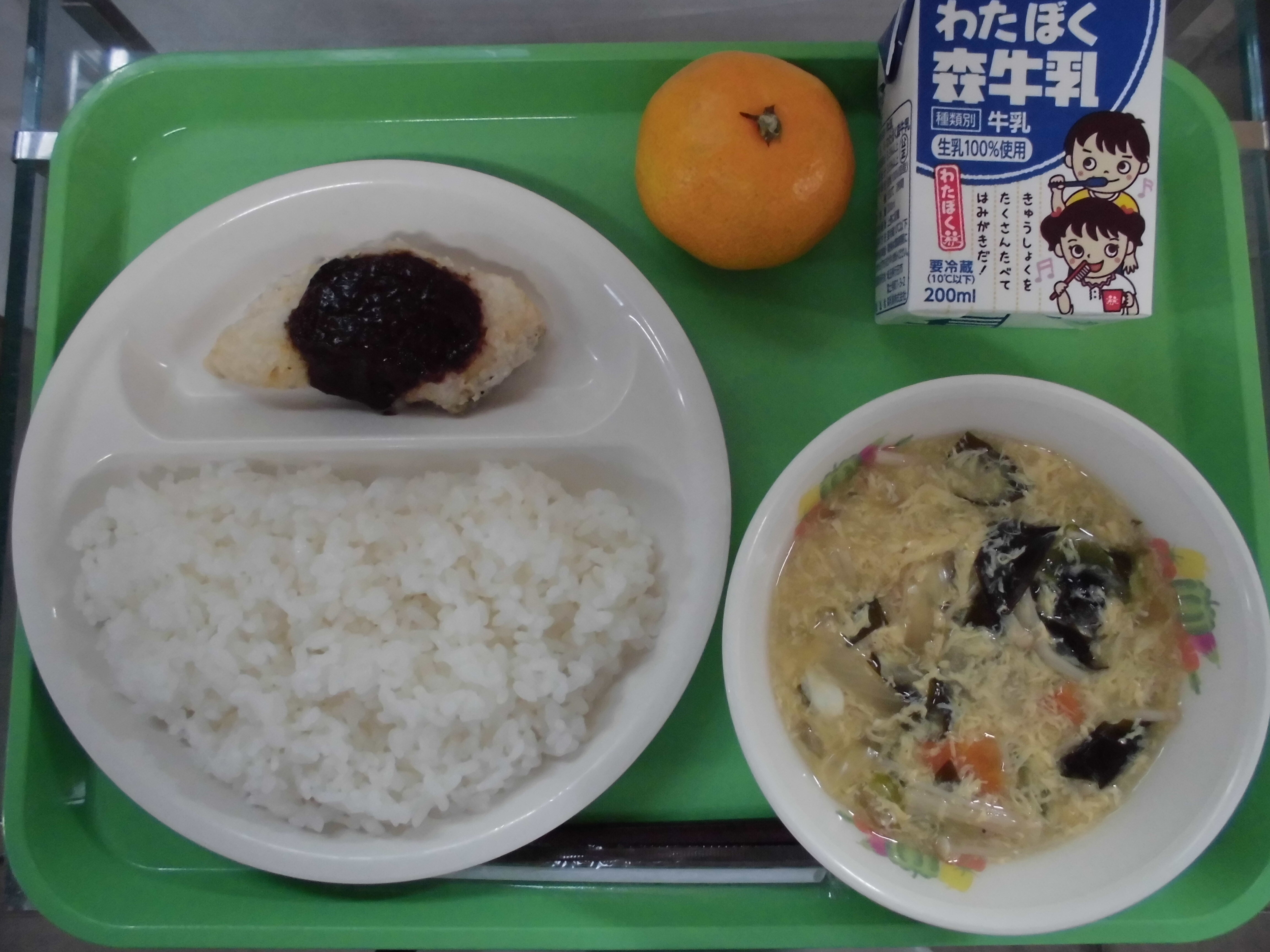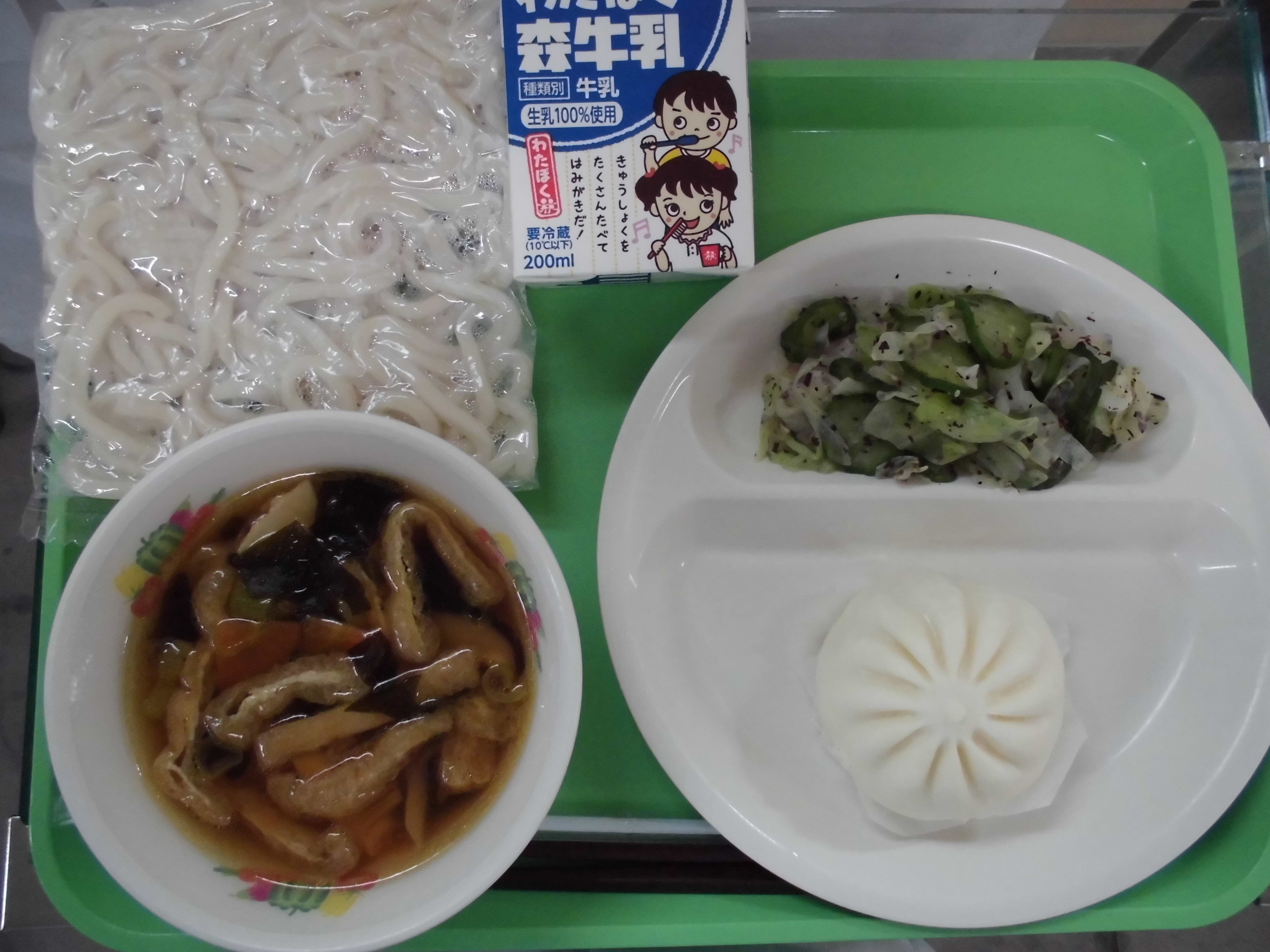 ★お皿の色と同化していますが…今日は、「彩の国肉まん」が登場!給食前から子どもたちがソワソワしていました。この「彩の国肉まん」には、皮の部分に埼玉県産の小麦粉を、具に埼玉県産の豚肉を使用しています。冷めてもとても美味しい肉まんでした!