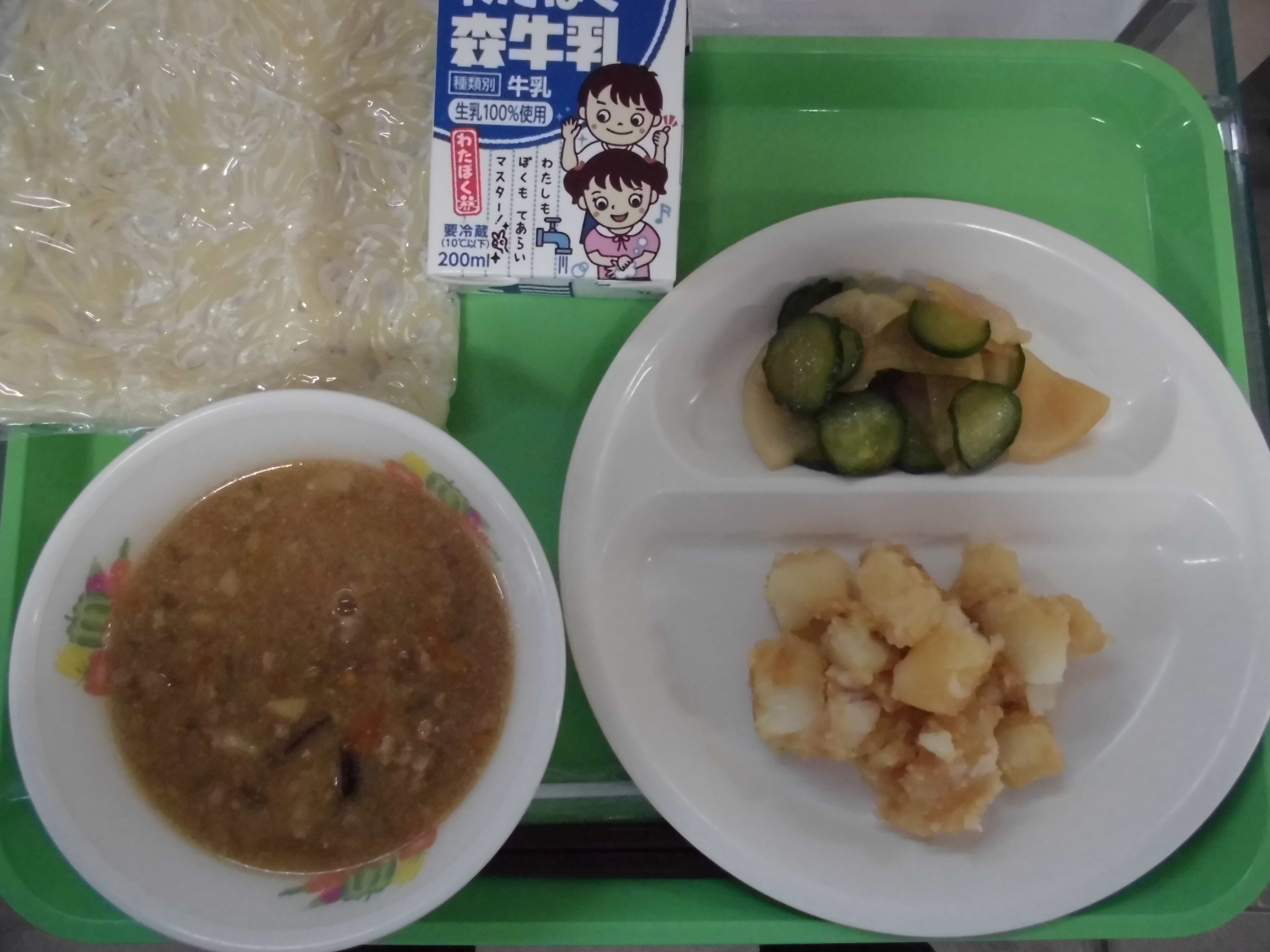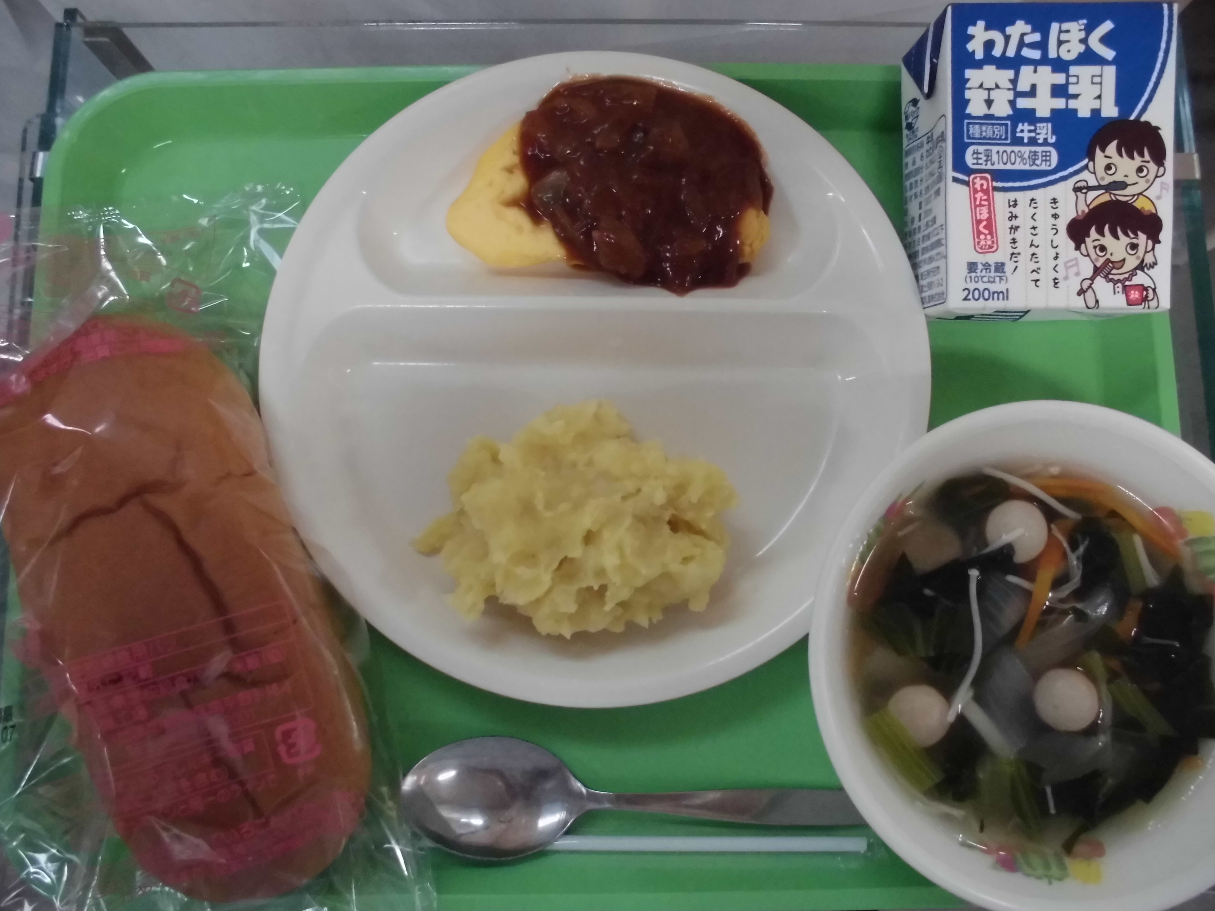 ★今日のコーンポテトは、マッシュポテトのような料理です。じゃが芋とクリームコーン、バターを混ぜ合わせました。給食では、じゃが芋もよく使う食材の一つです。子どもたちが飽きないように、今後も色々な調理方法や味付けで工夫をしていきたいと思います。