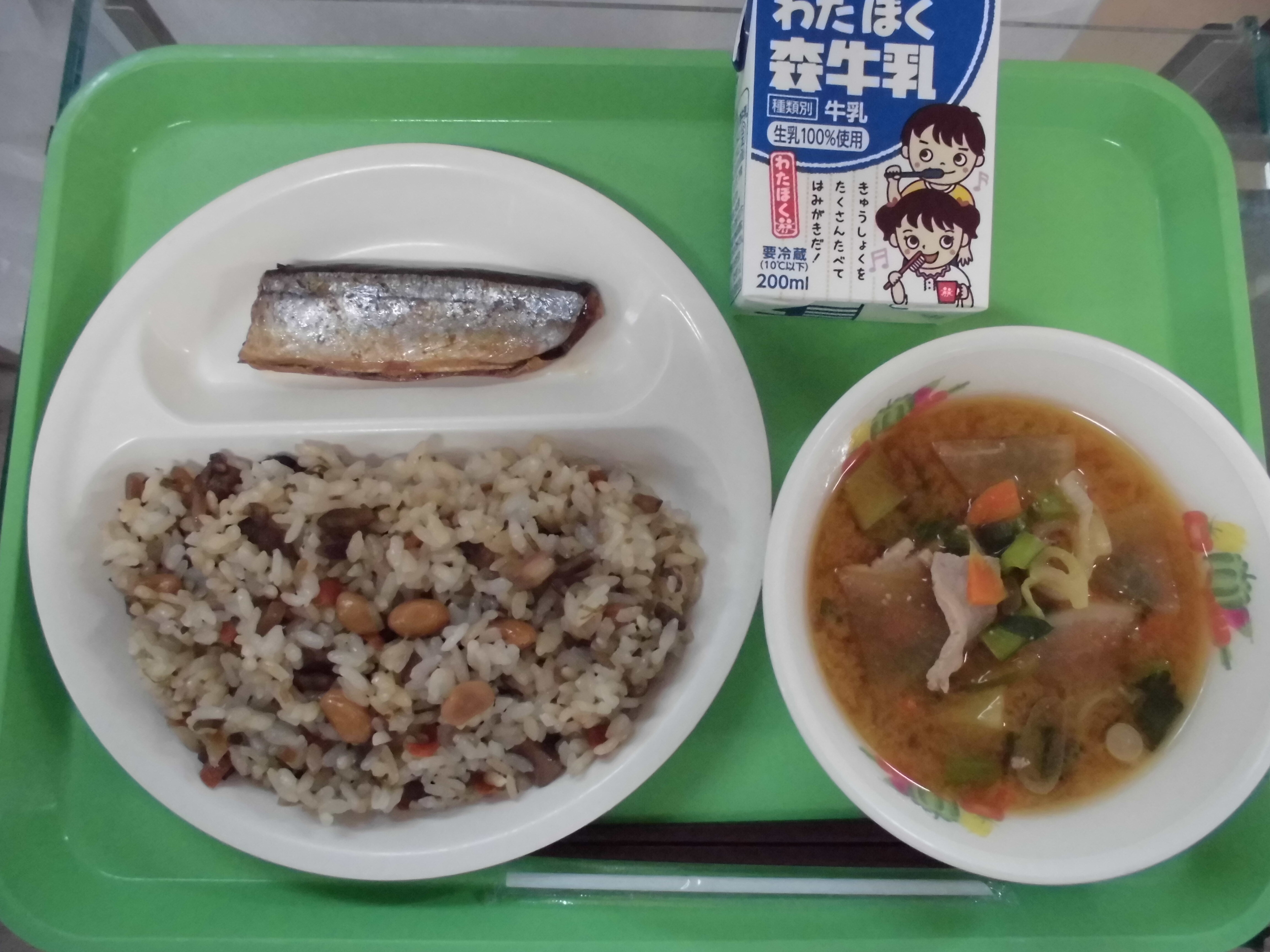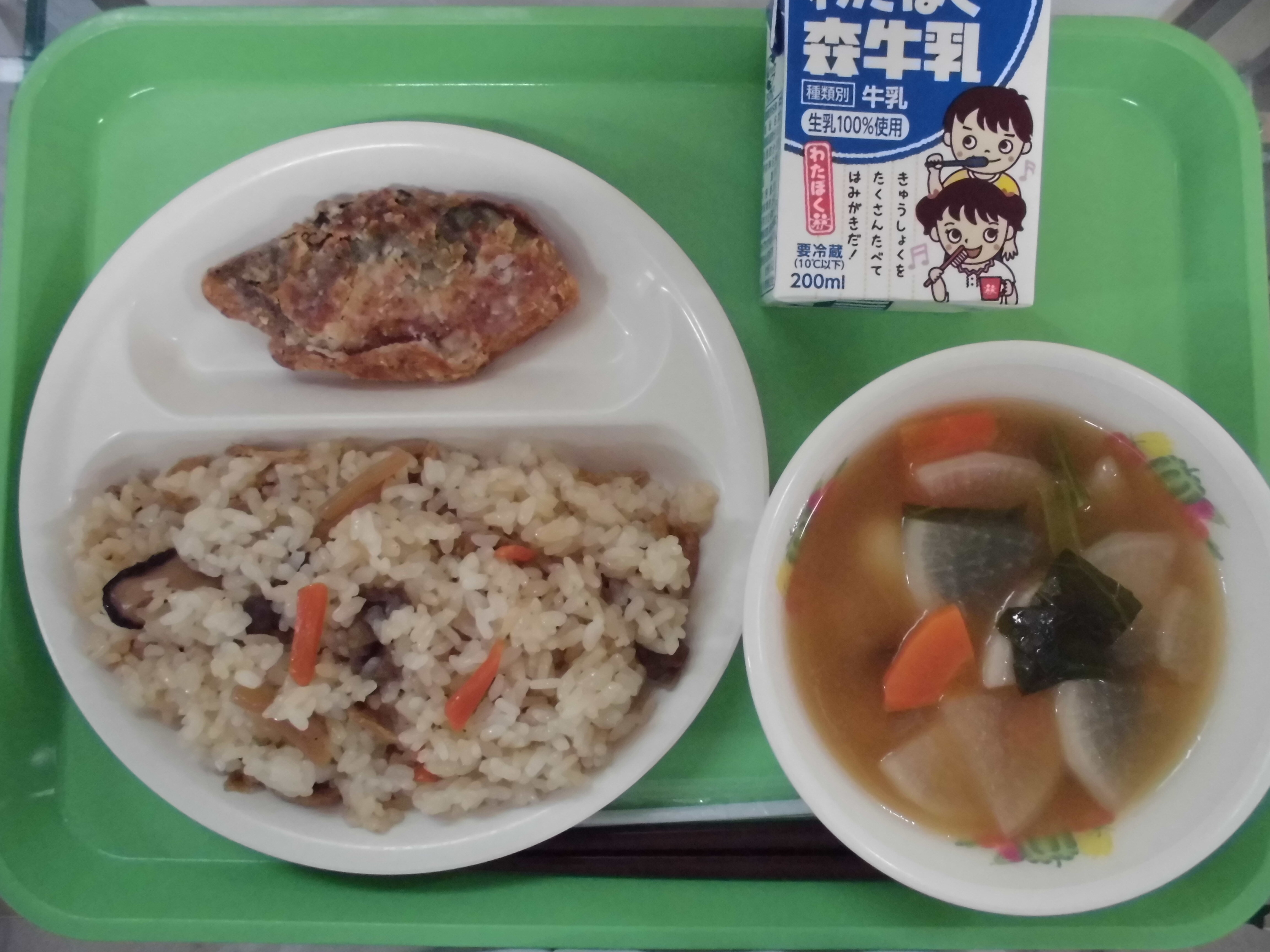 ★11月8日は「いい歯の日」です。丈夫で良い歯を作るためには、よく噛んで食べ、しっかり歯磨きをすることが大切です。今日の献立には、噛み応えのある食材(ごぼう、大豆、昆布、豚肉、根菜など)を入れました!給食でもお家でもよく噛んで食べるようにしましょう!