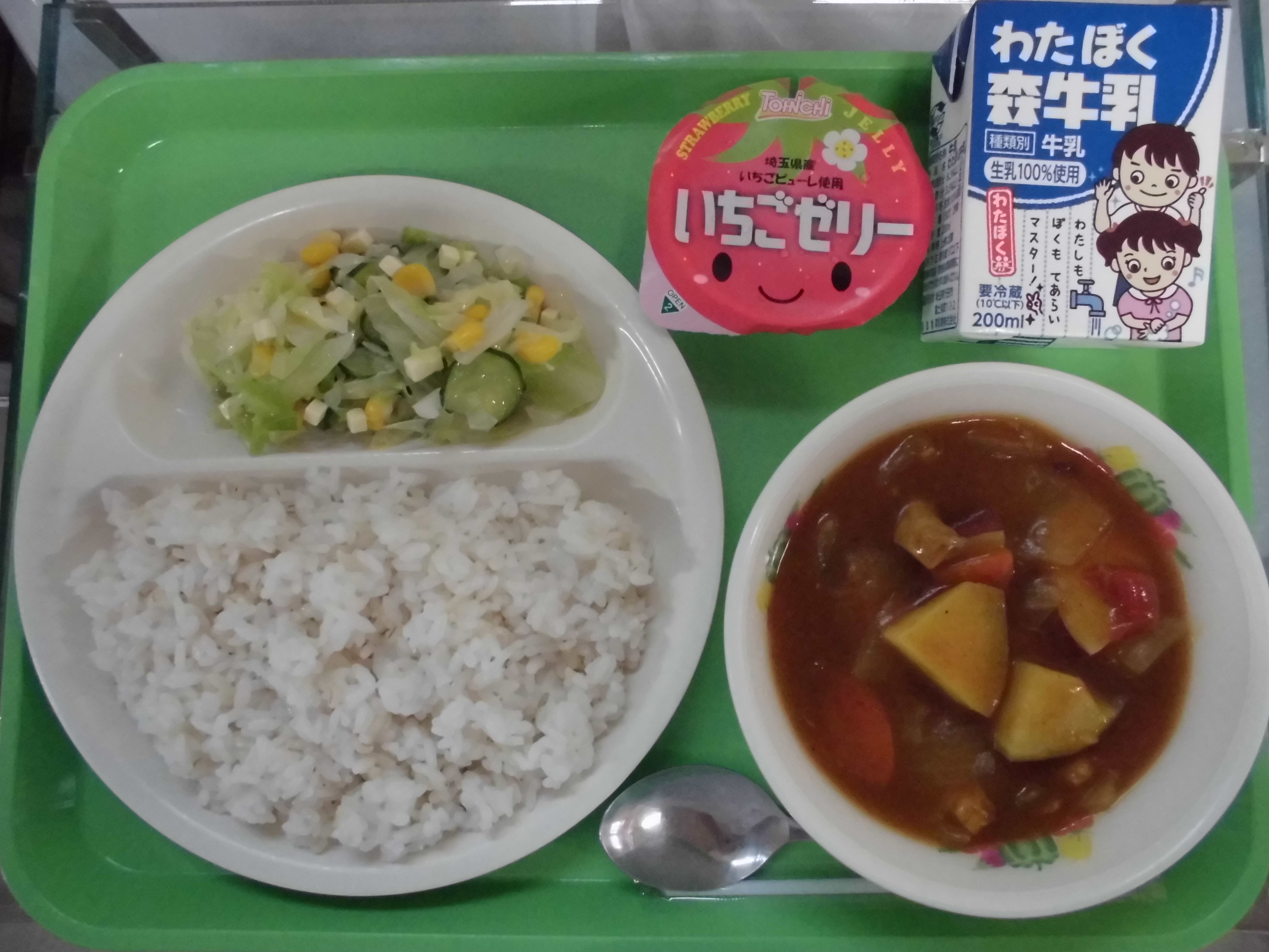 ★今日はさつま芋がたっぷり入った小江戸カレーです。小江戸と呼ばれる川越がさつま芋の栽培が盛んだったことから、この名前をつけました。今日のさつま芋は、川越市産ではなく、なんと!植水小学校で作られたさつま芋です♪2年生が一生懸命芋掘りをしてくれました。甘くて美味しかったです。
