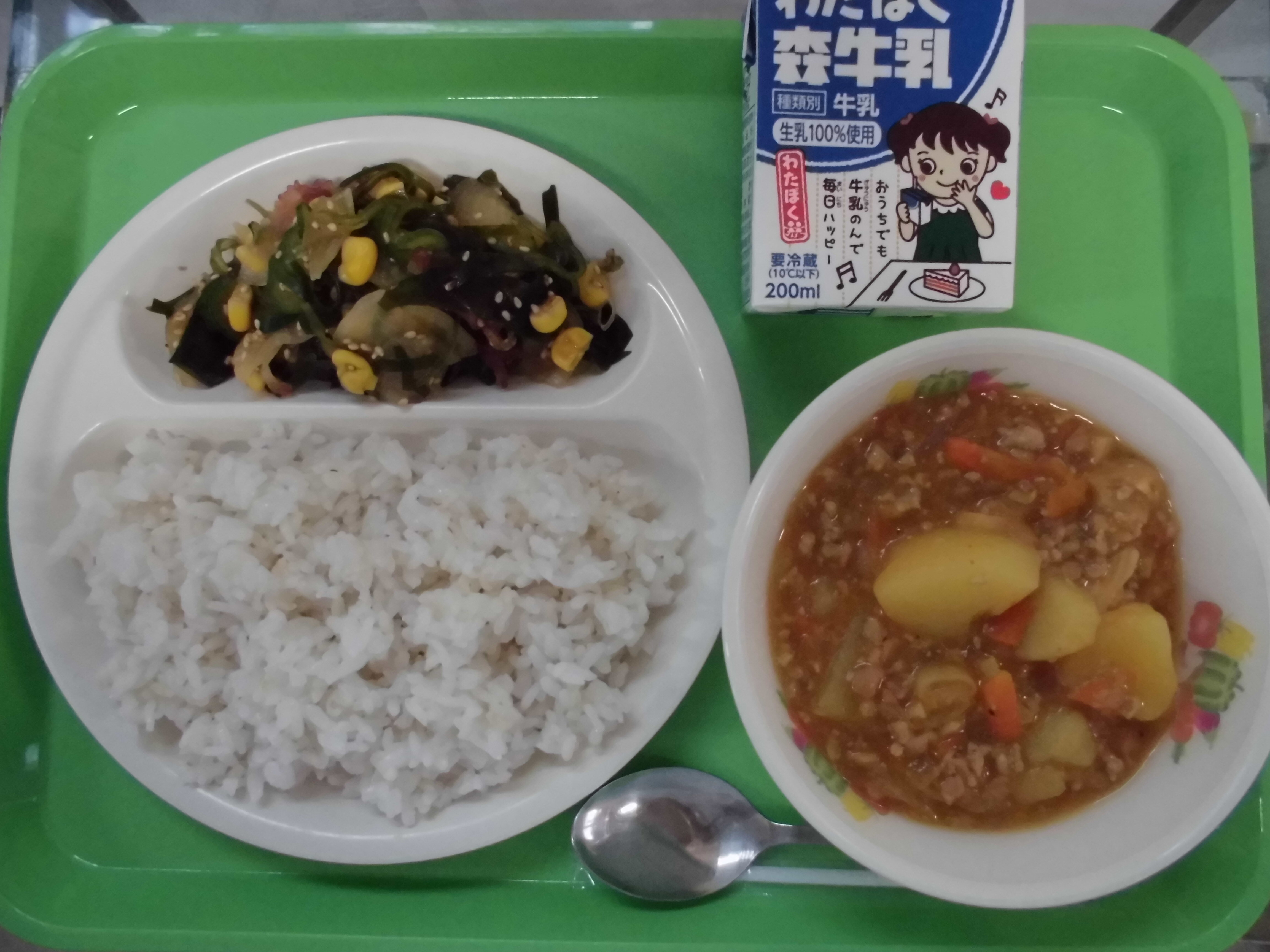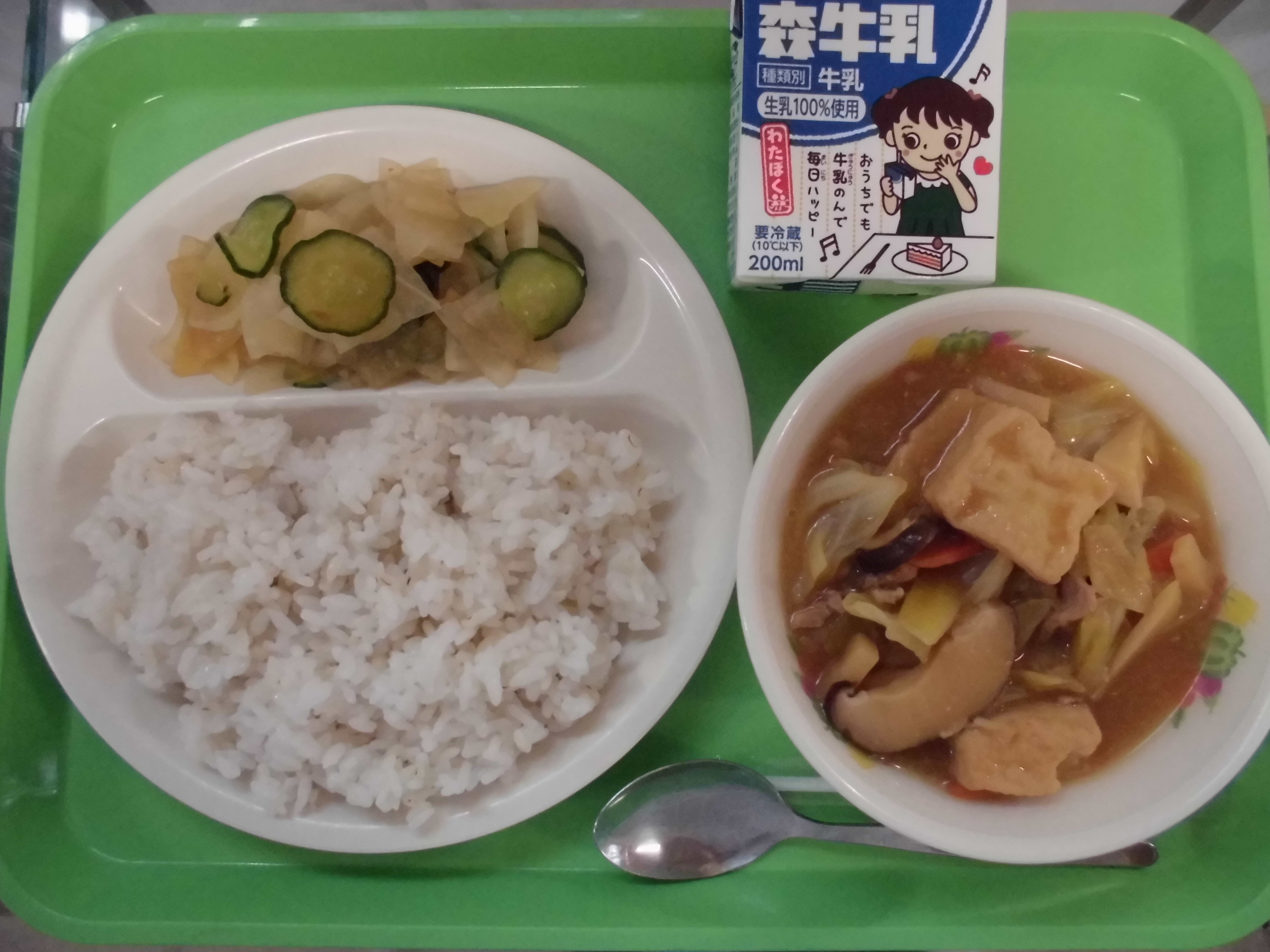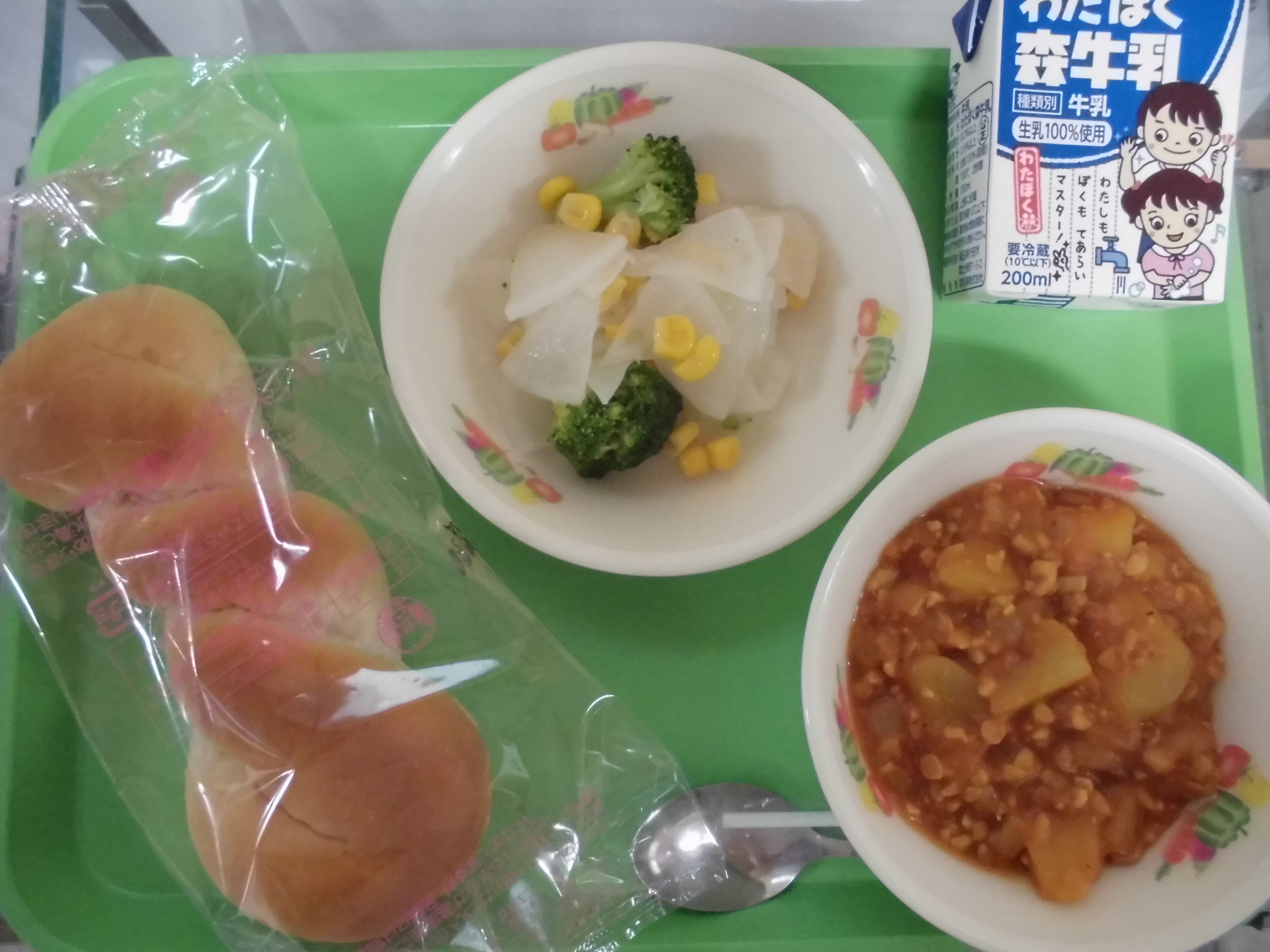 ★今日は豆腐ではなく、じゃが芋を使ったじゃがマーボーです。じゃが芋は、風邪や病気を予防するビタミンcやおなかの調子をよくする食物繊維が含まれています。今日もしっかり食べて、病気に負けない体を作りましょう!