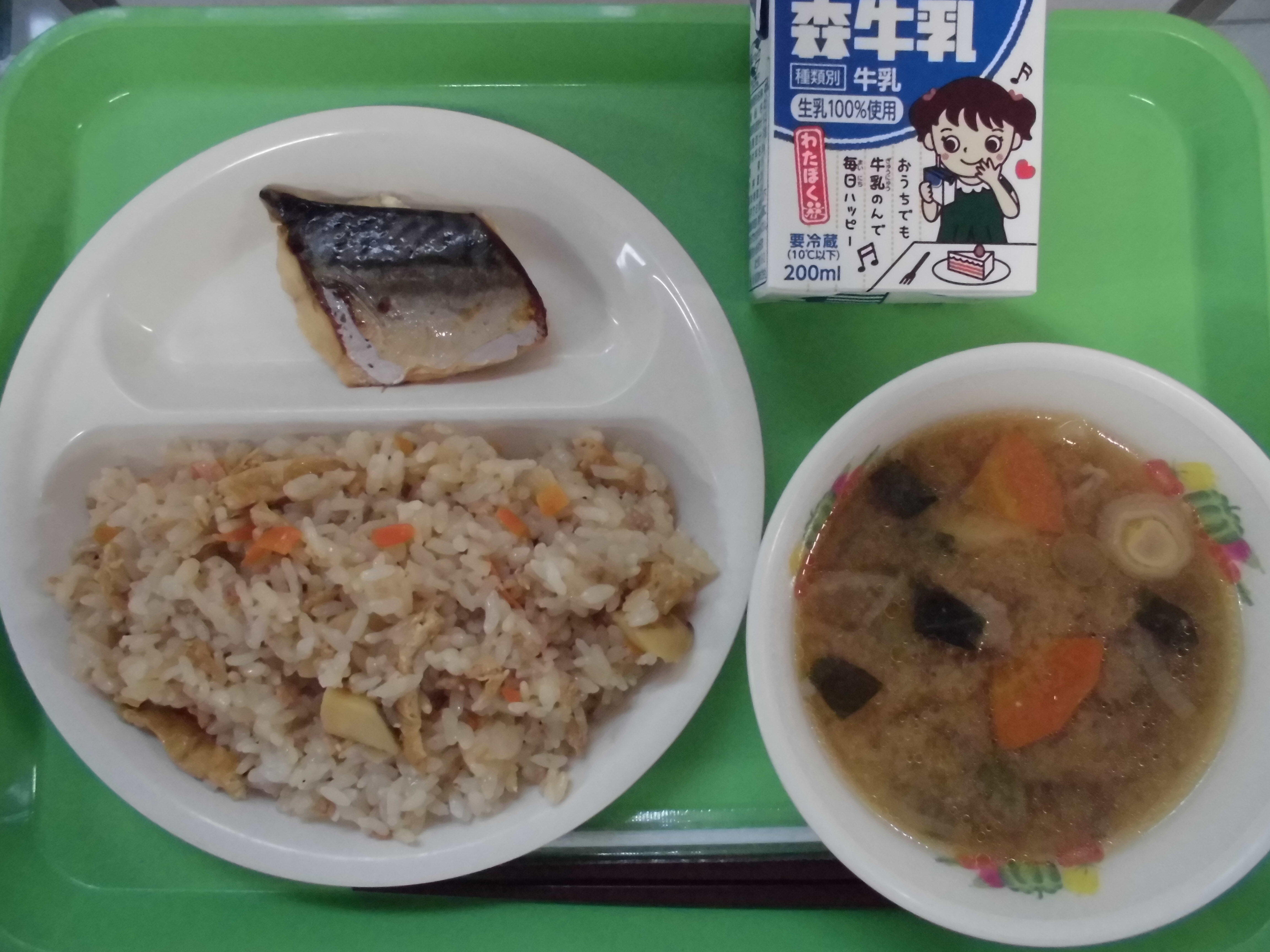 ★今日は「柳川風丼」です。なぜ「ふう」なのか…。本来、柳川丼は、どじょうを使った鍋料理をご飯の上にのせた丼です。学校では、なかなかどじょうを出すのは難しいため、代わりに豚肉を使って「柳川風」としました。今が旬のごぼうもたっぷり入っています!